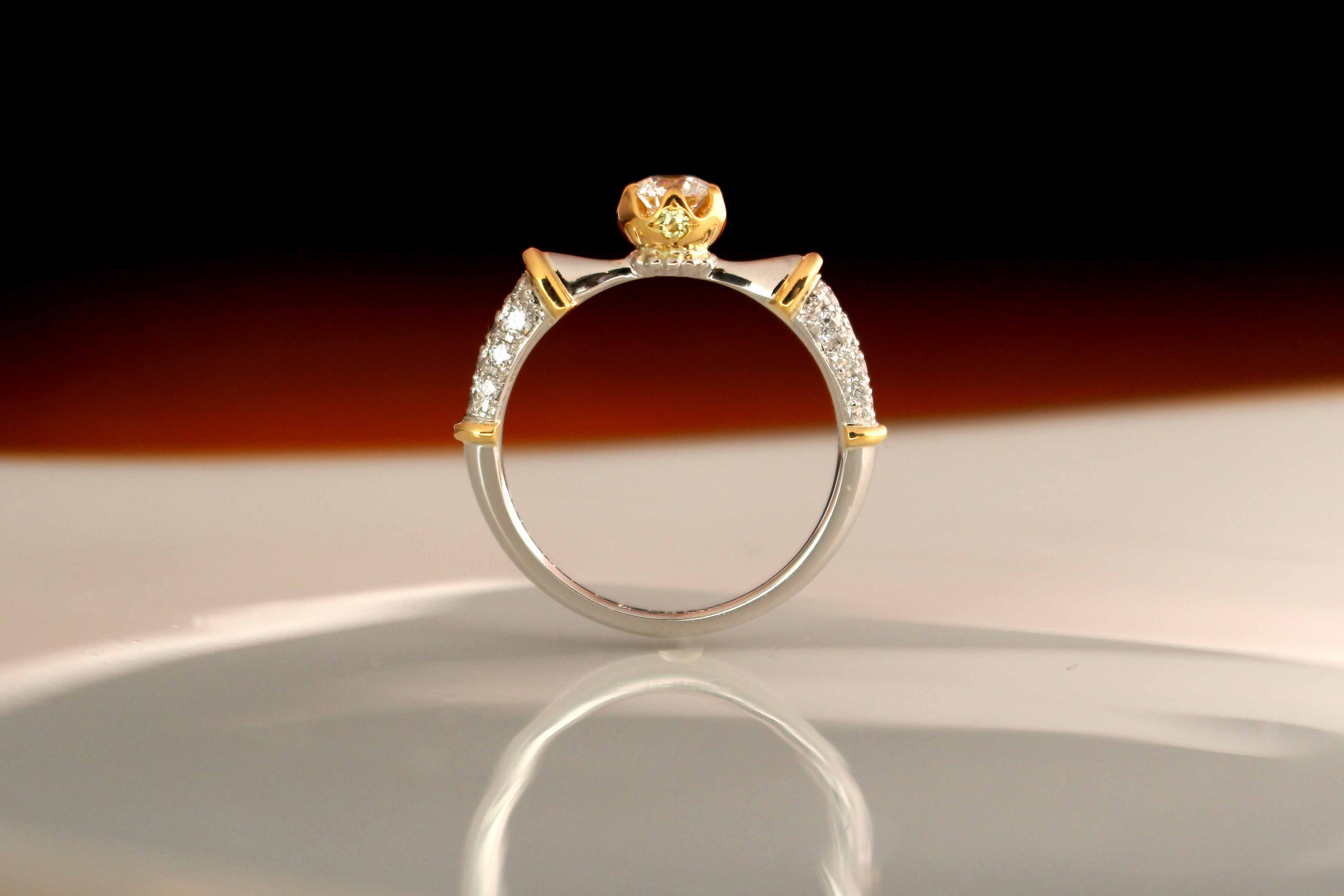 腕にはダイヤモンドをパヴェセッティング致しておりますのでリング全体がキラキラと輝きます。