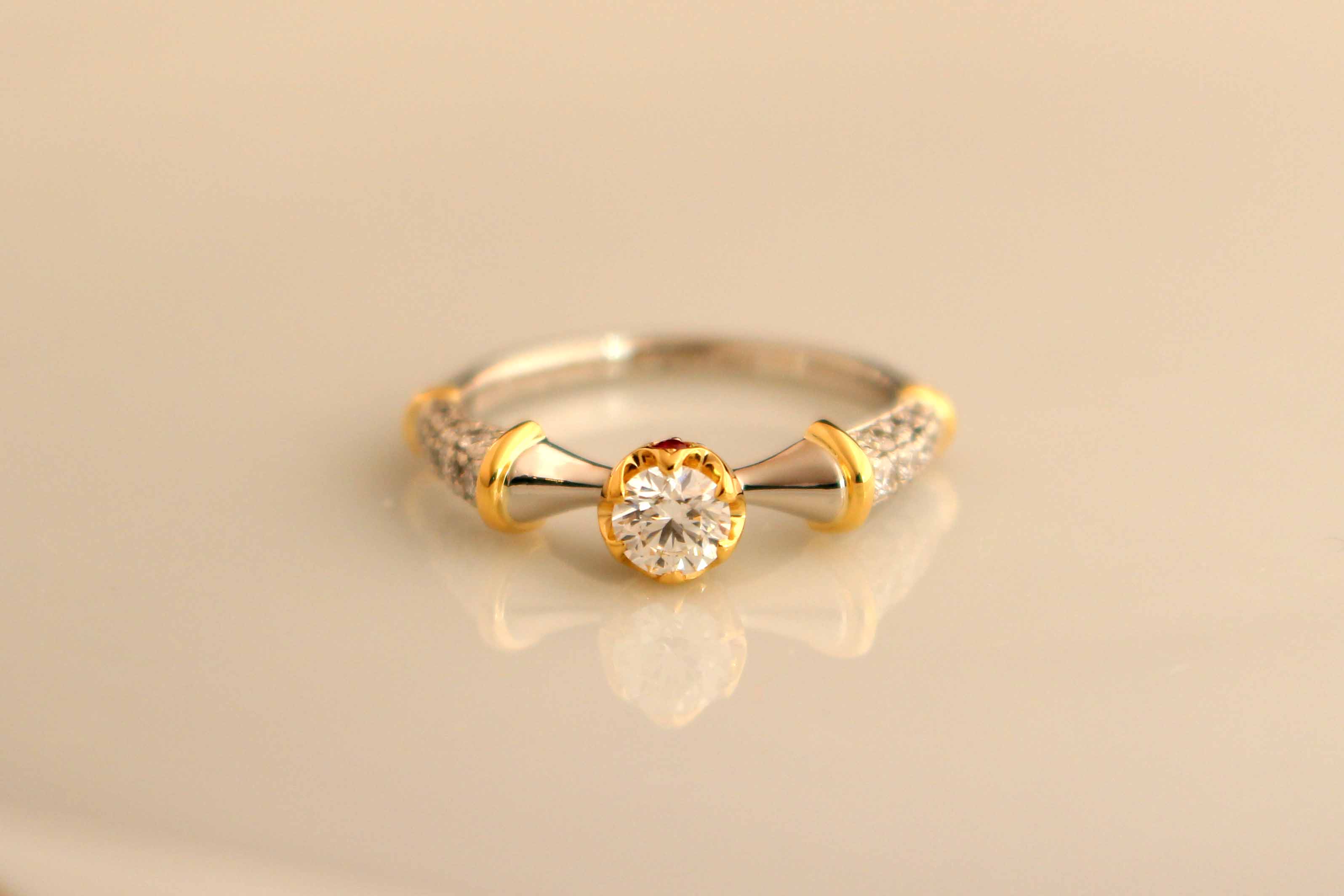 Pt900/K18 エンゲージリング ダイヤモンド0.303/0.264ct
