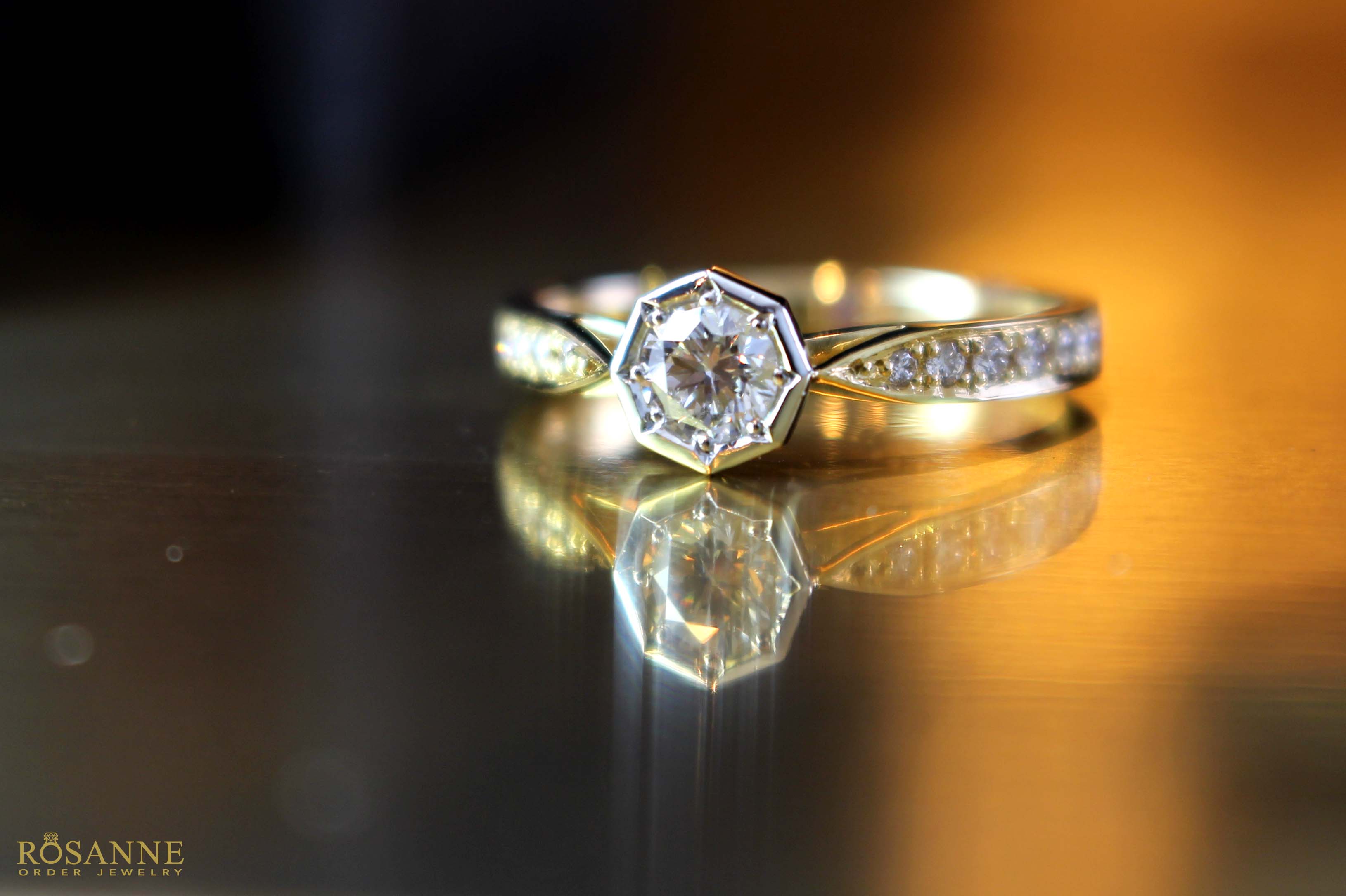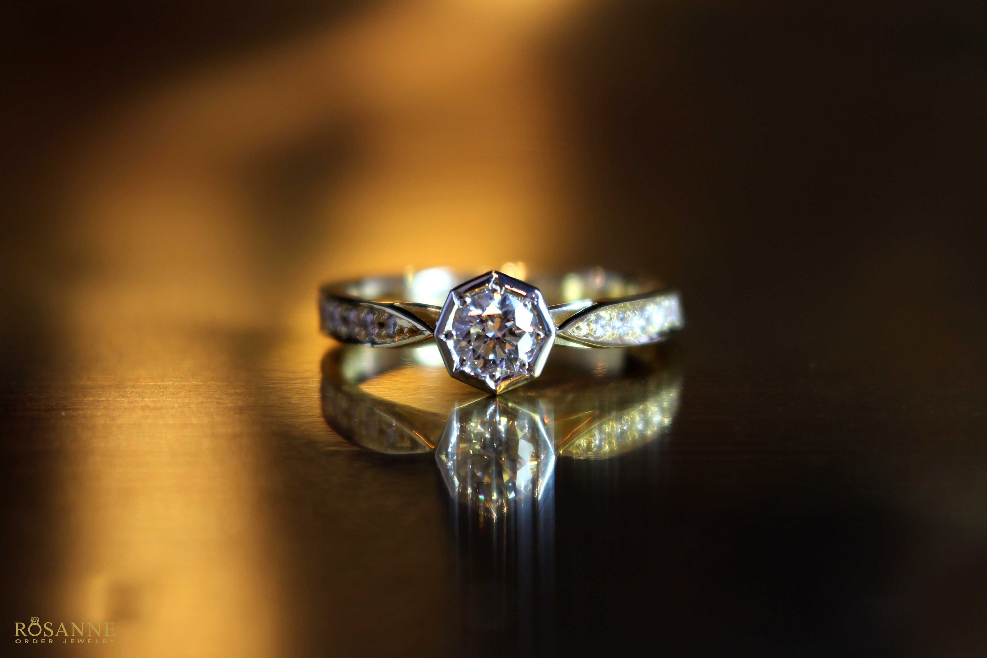 8角形で構成された石座がクラシックな雰囲気のエンゲージリング。