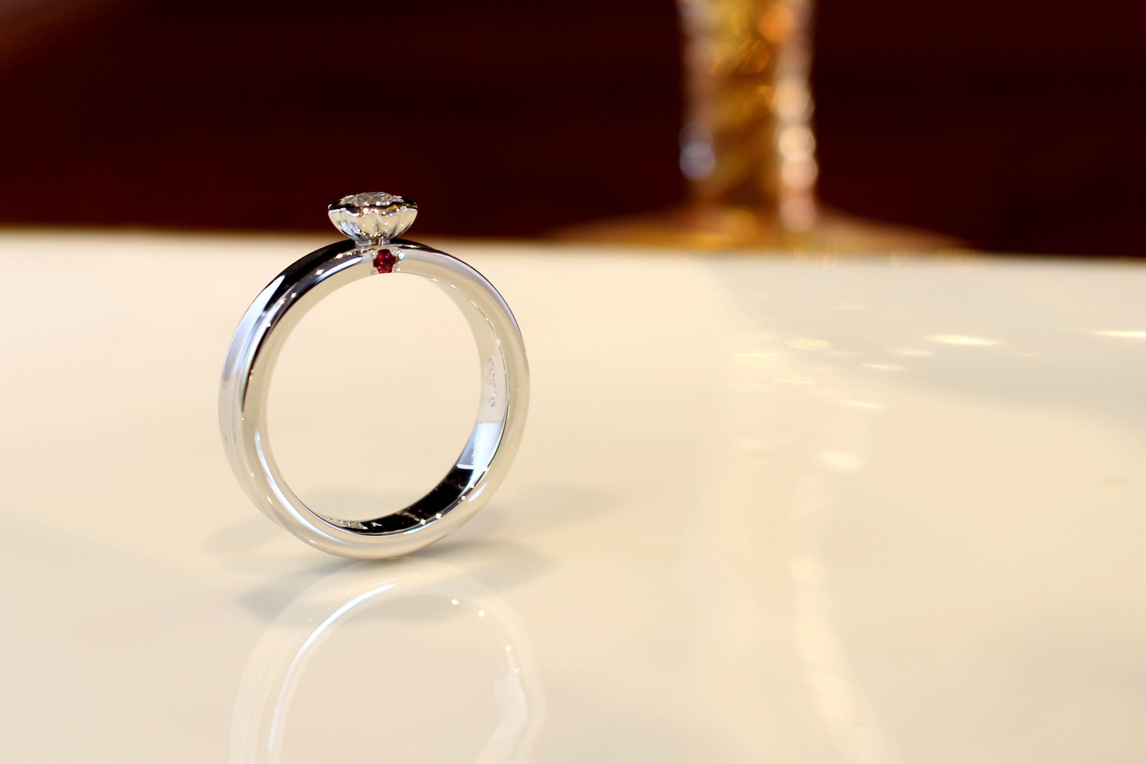 カジュアルにお使いになりたいというご要望から一般的なエンゲージリングよりも幅と厚みを設けました。