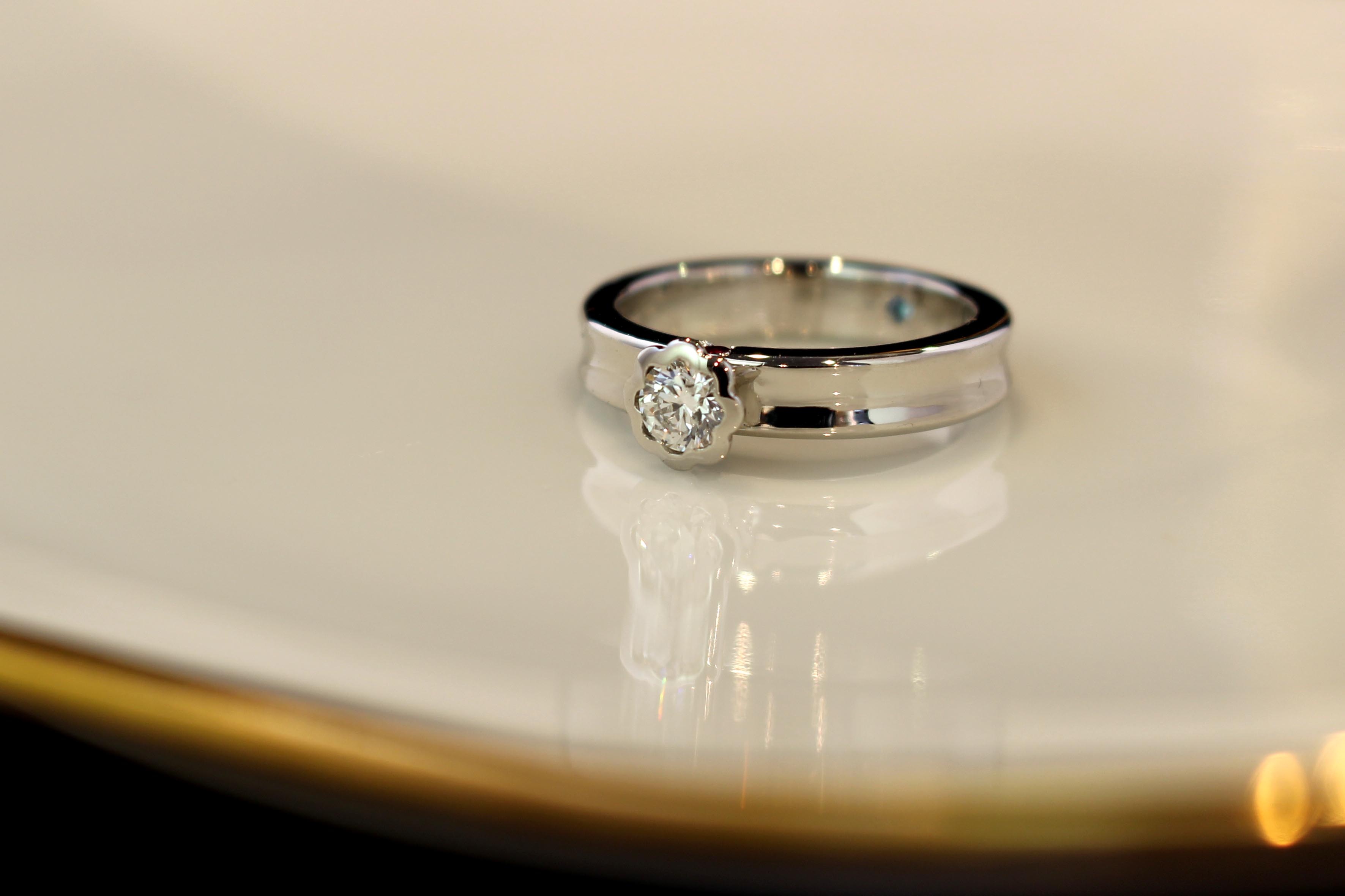 地金をしっかりと贅沢にお使いした婚約指輪。