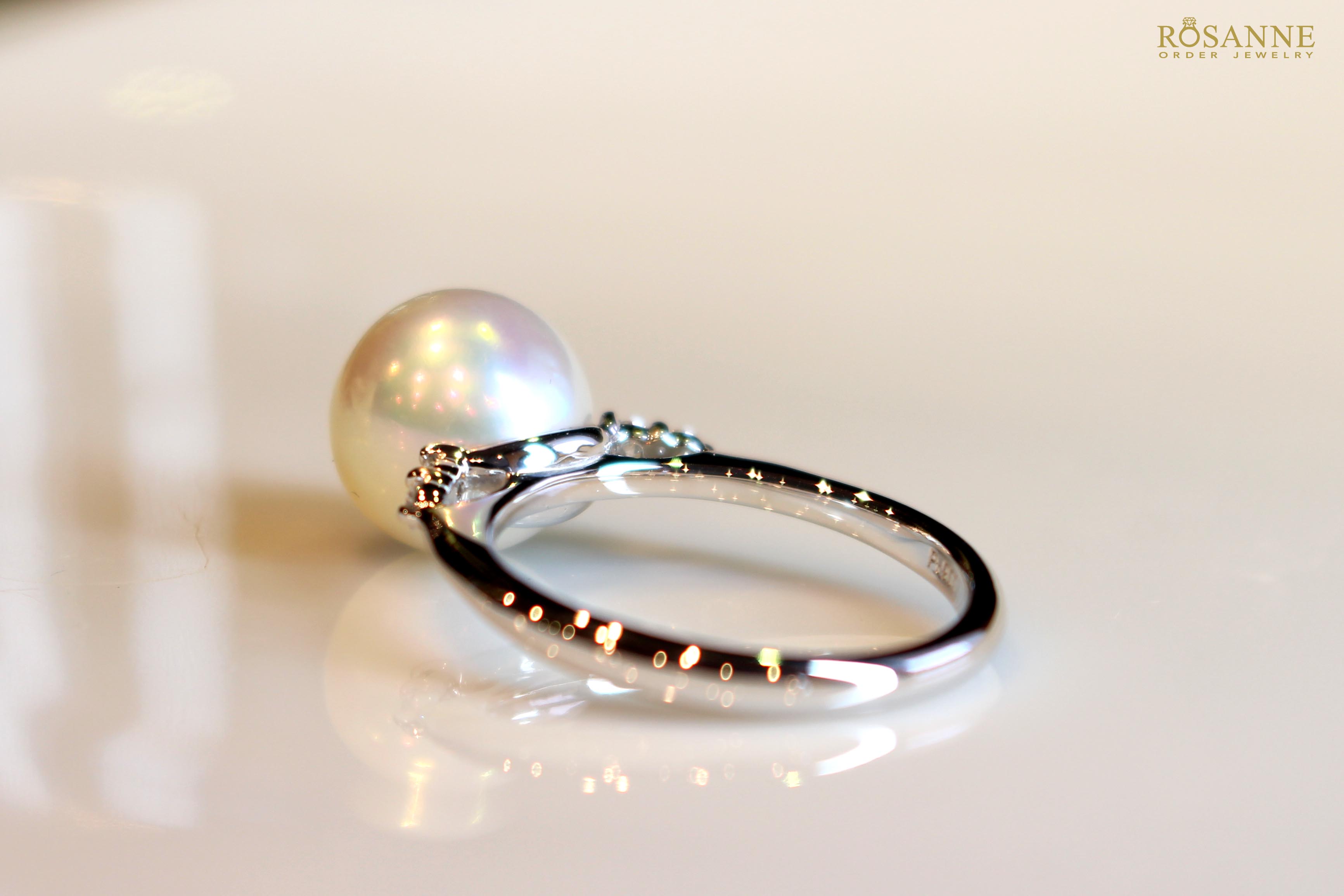 ポイントで輝くダイヤモンドがパールをより引き立てます。