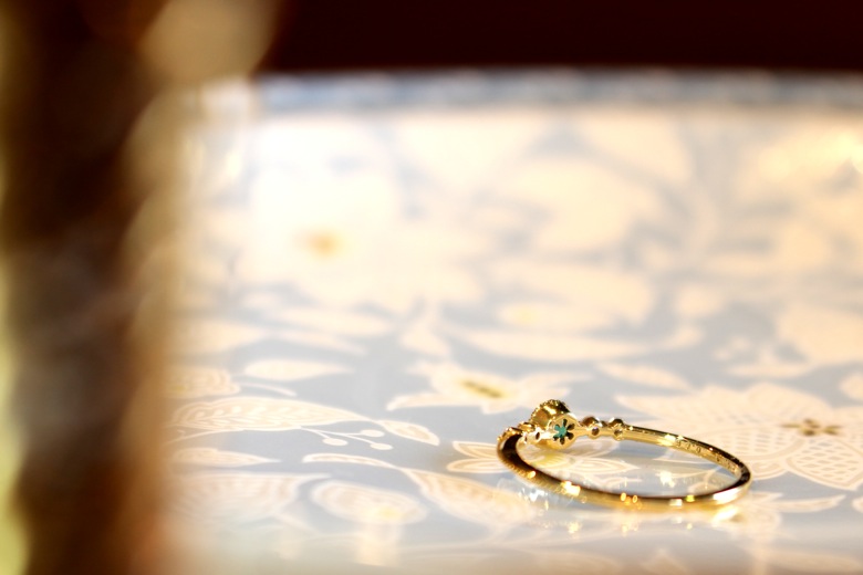 サイドストーンにはダイヤモンドが4ピース。きらきら光りせんたーすとーんを引き立てます。