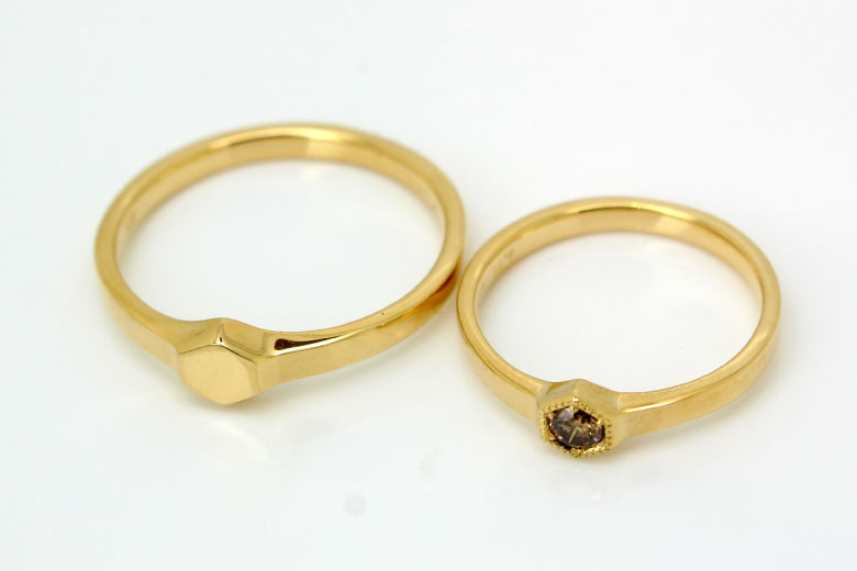 昔はリングに名字を彫りいれハンコとして持ち歩く文化がありました。この「印台リング」をモチーフにレトロ感を残しつつ現代風にアレンジさせて頂きました。