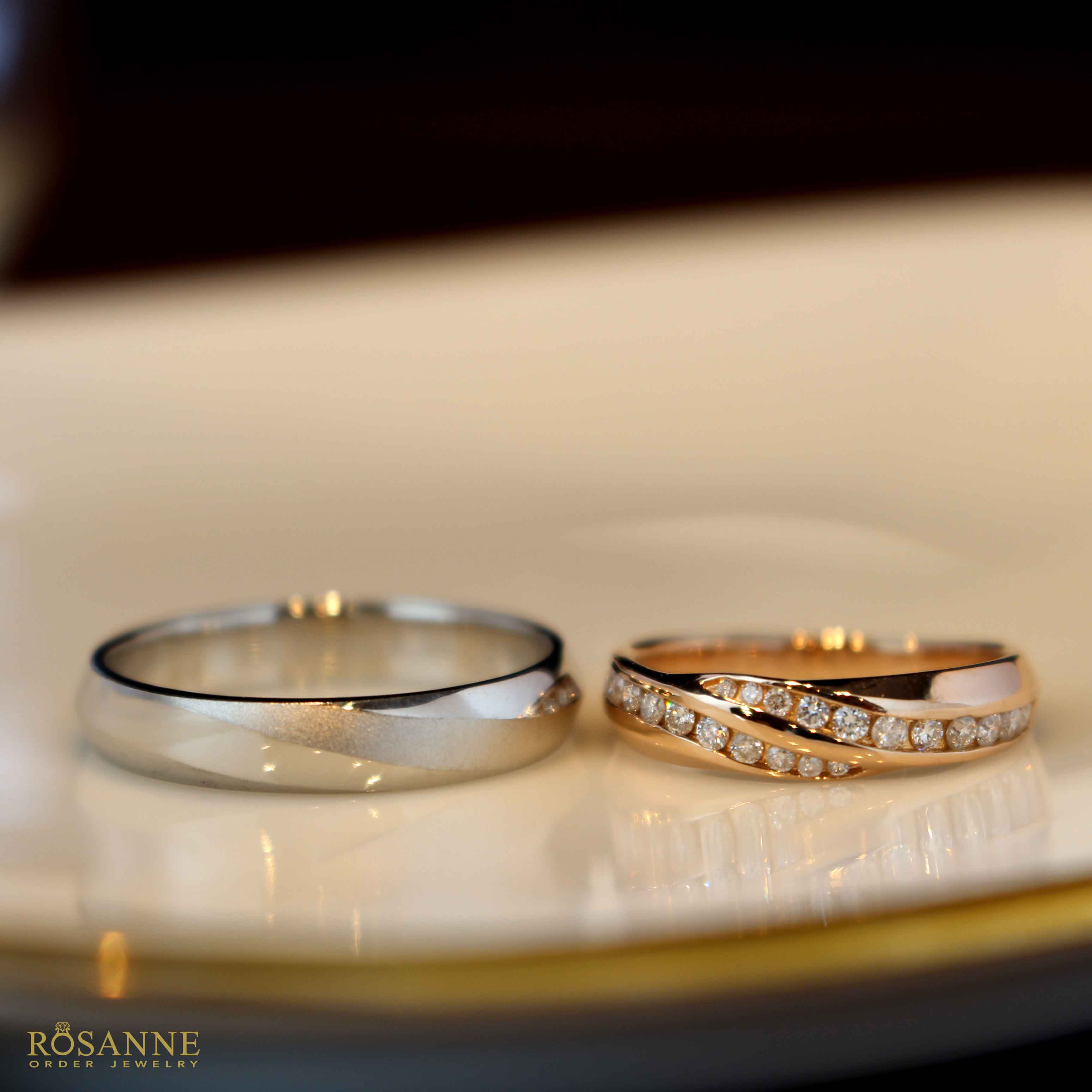 お持込み頂きましたレディースリングに合わせて、メンズリングをお作りさせていただきました。