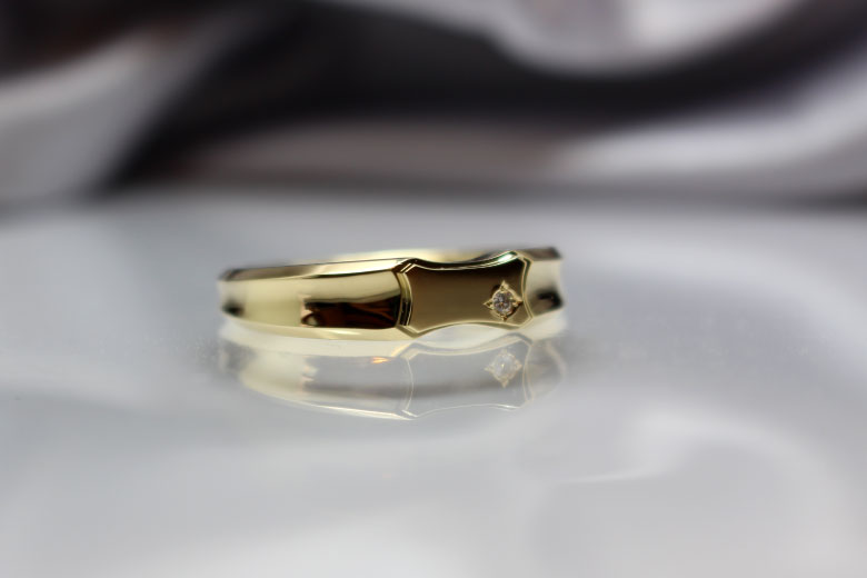 ボリューム感のある男らしい印台リング。シャープなラインがカッコイイデザインです。ポイントでダイヤモンドを配置しました。