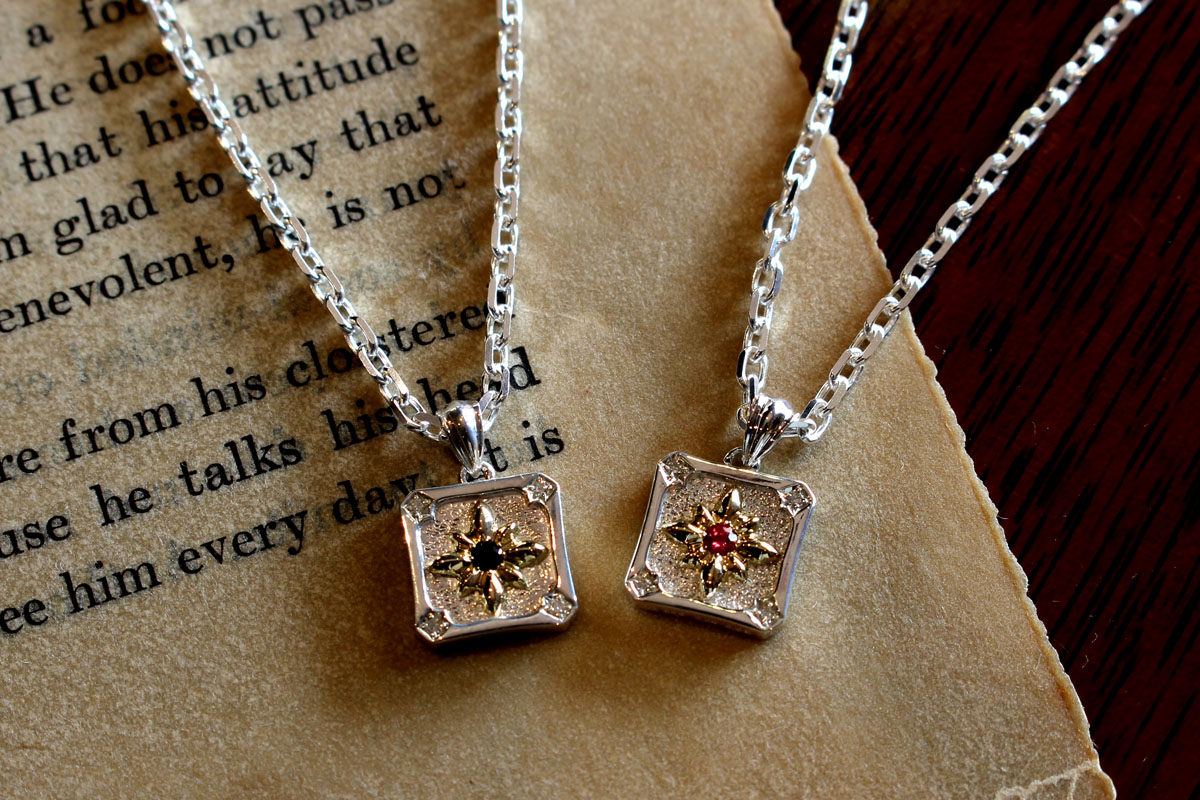左のブラックサファイアのネックレスをベースにピンクトルマリンでセミオーダー頂いたネックレスです。