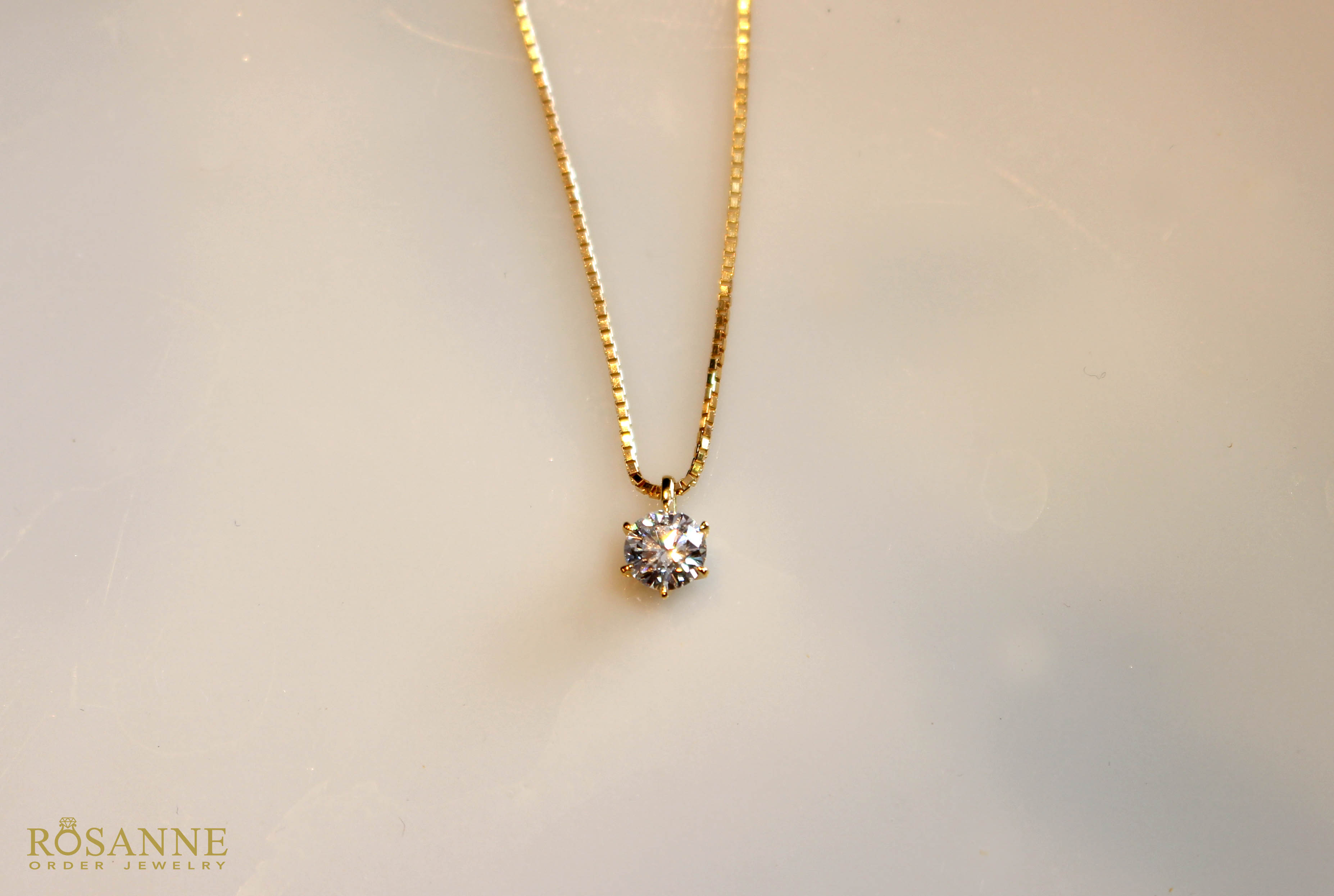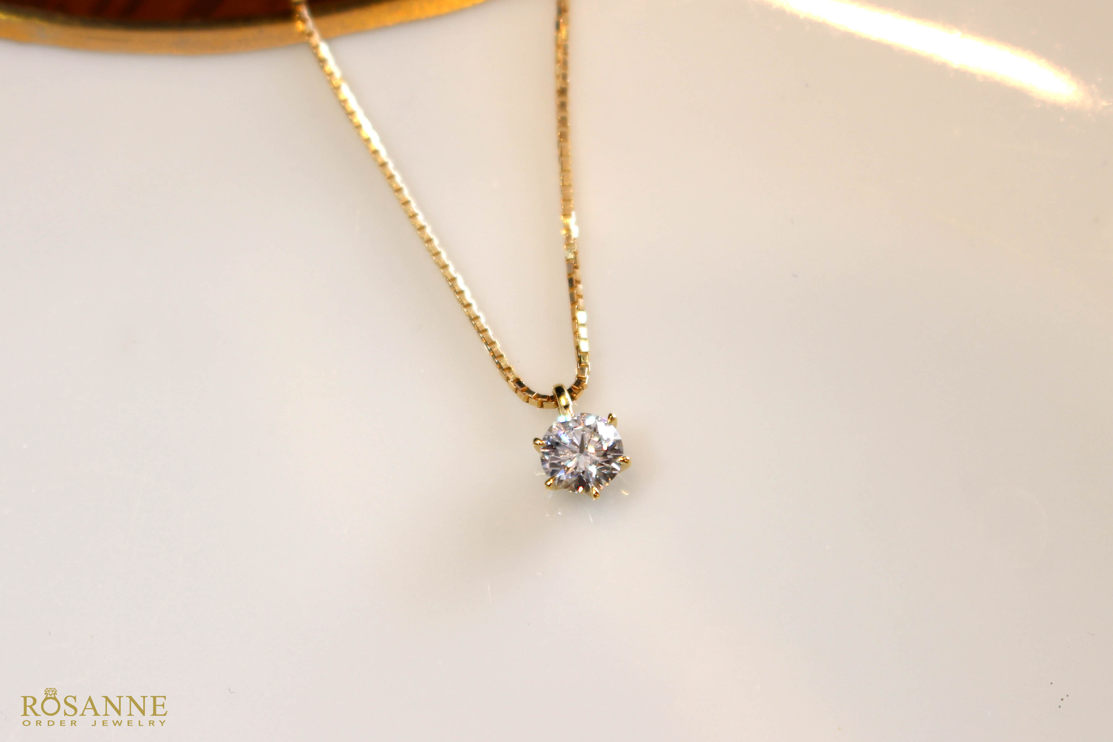 シンプルな6本爪はダイヤモンドの輝きを最大限に引き出します。大切なダイヤモンドを無くしてしまわないようベネチアンチェーンはやや太めでパーツは溶接加工致しました。
