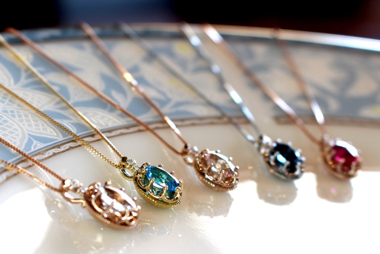どこからみても美しいデザインを意識して制作したペンダントです。特にサイドからの宝石の見え方にこだわりました。