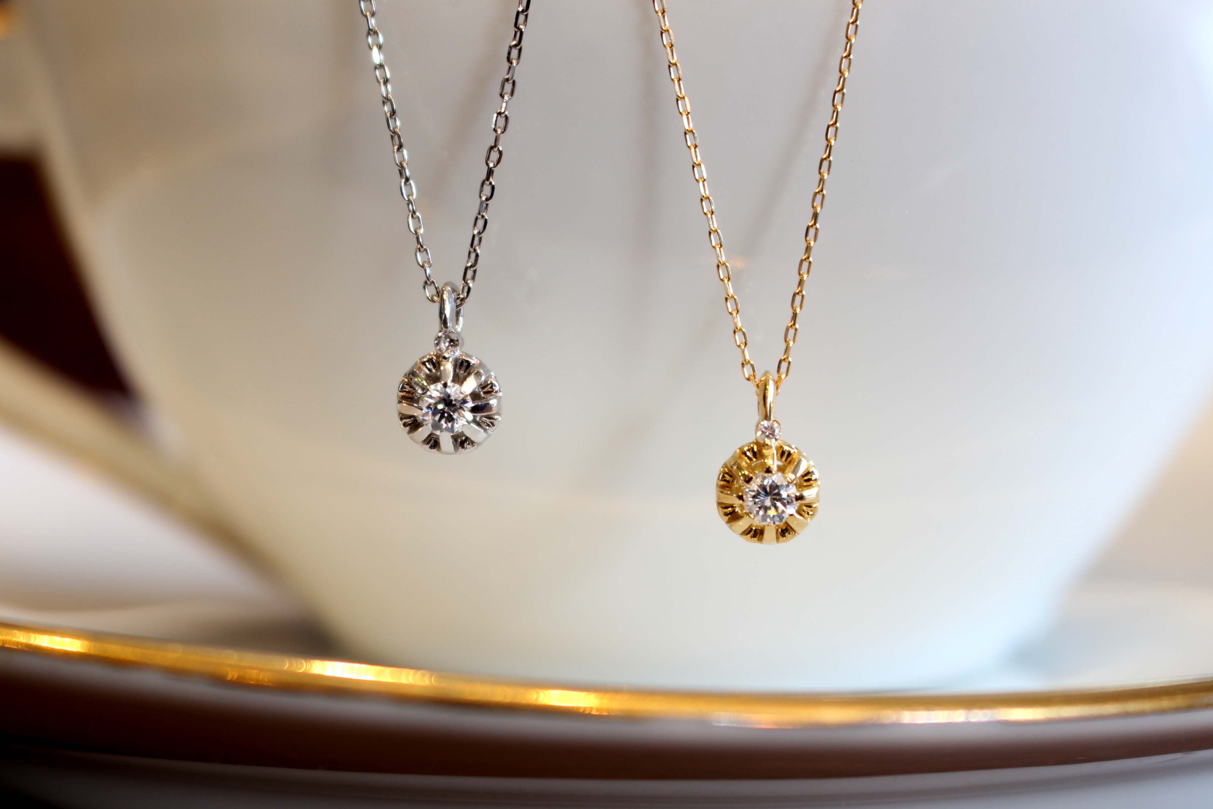 ダイヤモンドをより美しく輝かせることに、こだわったロザンヌで一番人気の1粒ダイヤネックレス。