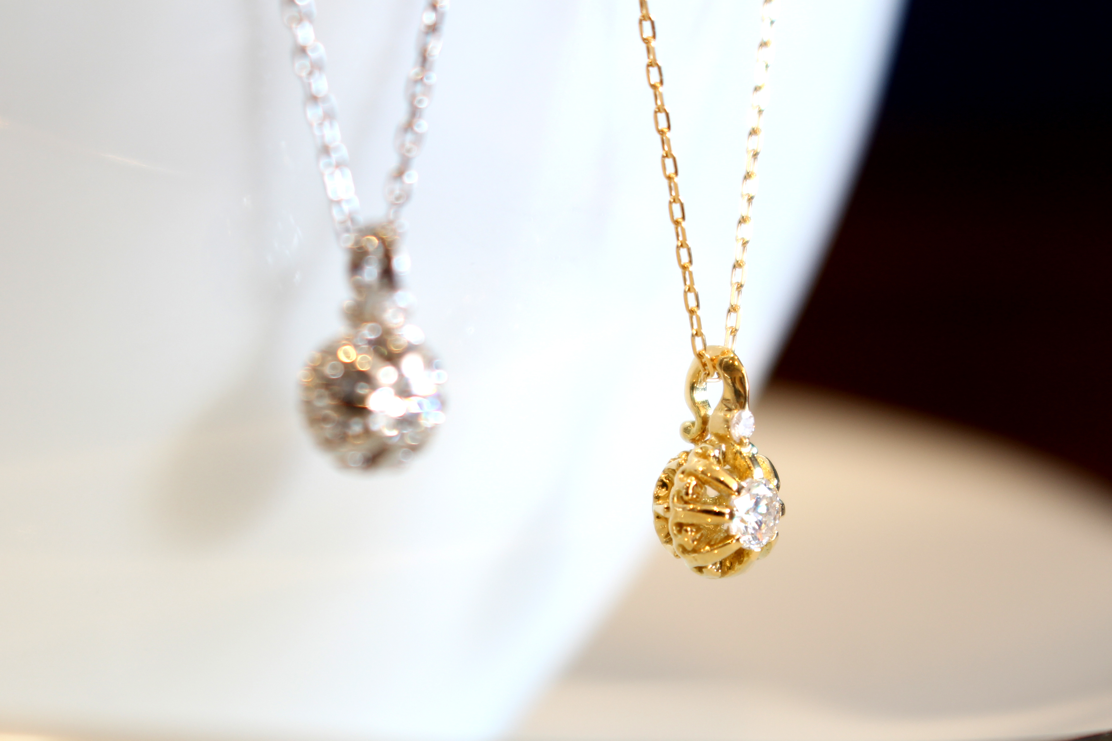 包み込むようなデザインはどの角度からご覧頂いても美しいネックレスです。