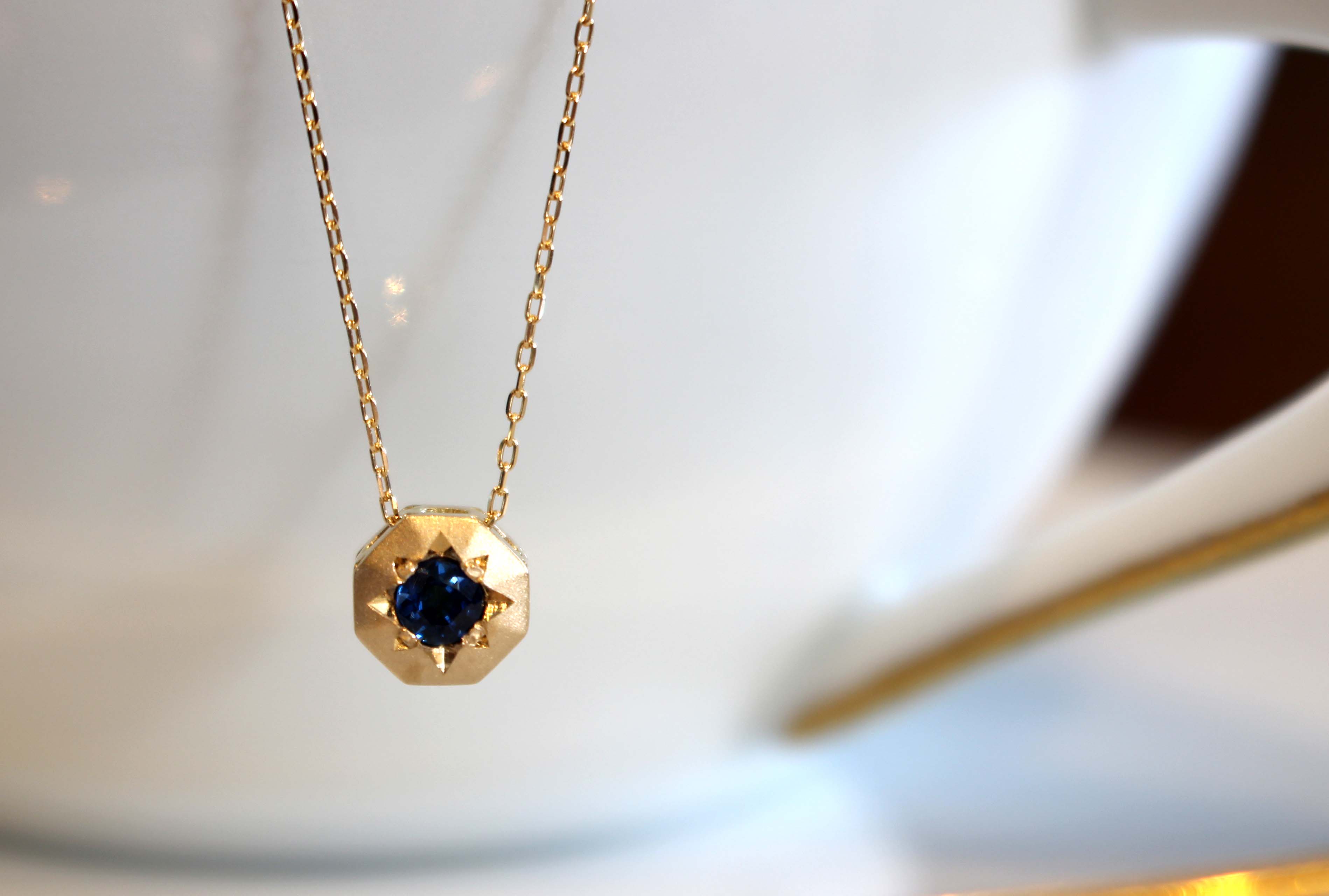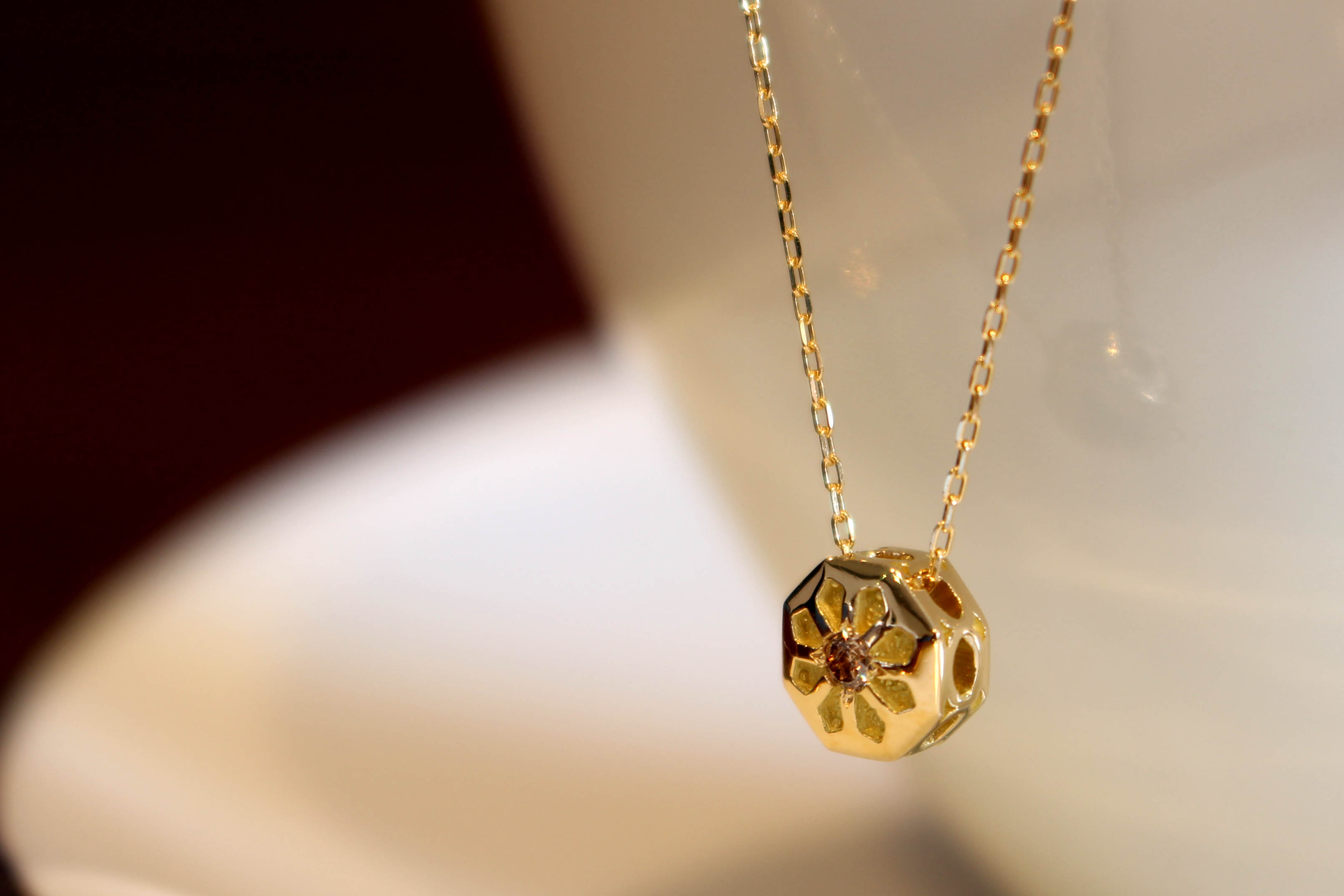 K18ゴールドを贅沢に使った、お洒落なオクタゴン(八角形)ネックレス。
