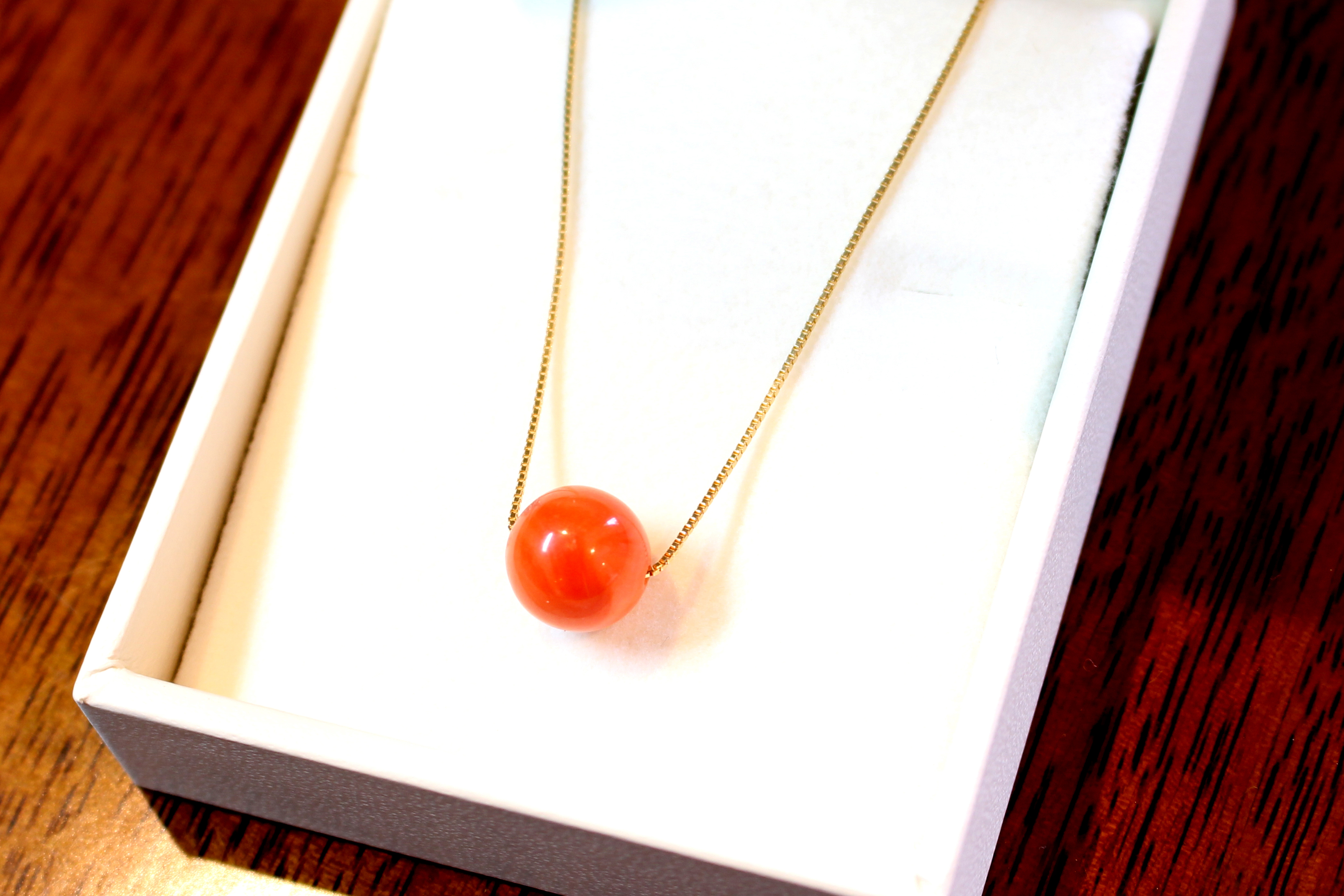 赤色珠K18ネックレス加工