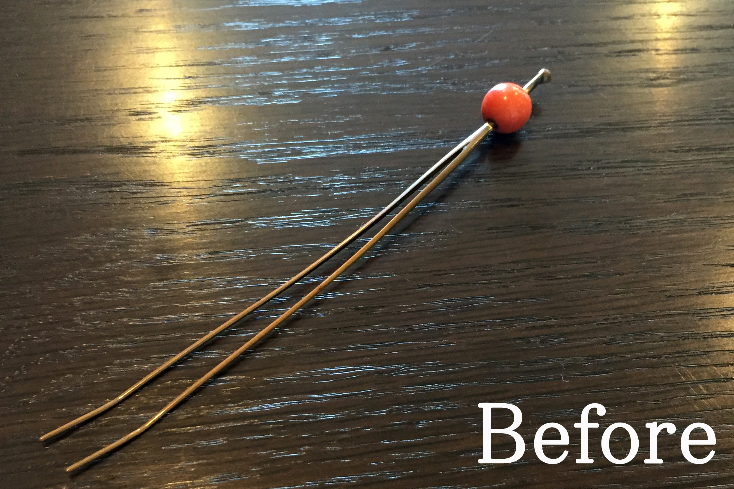 使わなくなってしまっていたサンゴのかんざしを手軽にお使い頂けるネックレスに加工させて頂きました。
