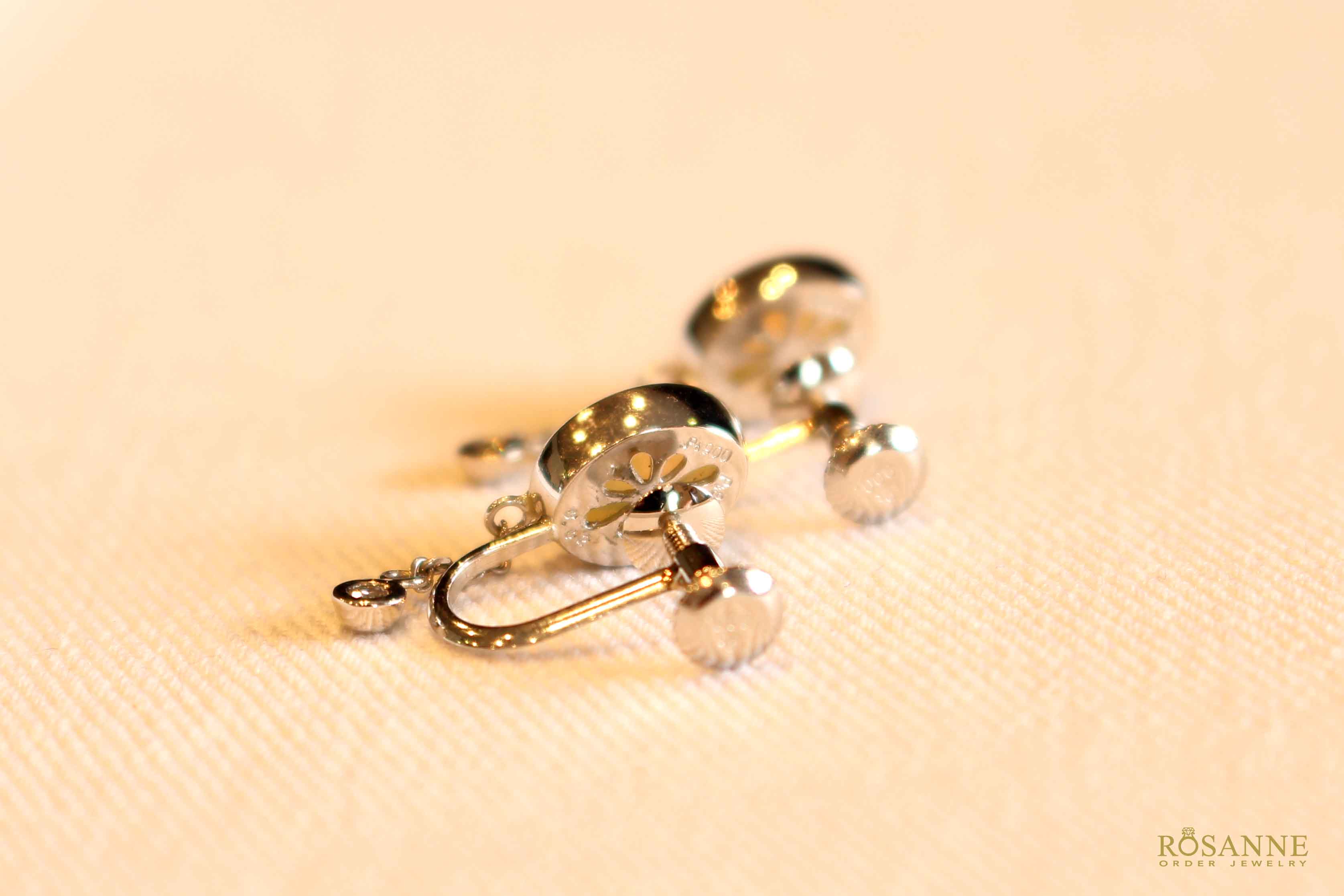シンプルなデザインのイヤリング。オーバルの石座にはダイヤモンドが揺れてキラキラ輝きます。