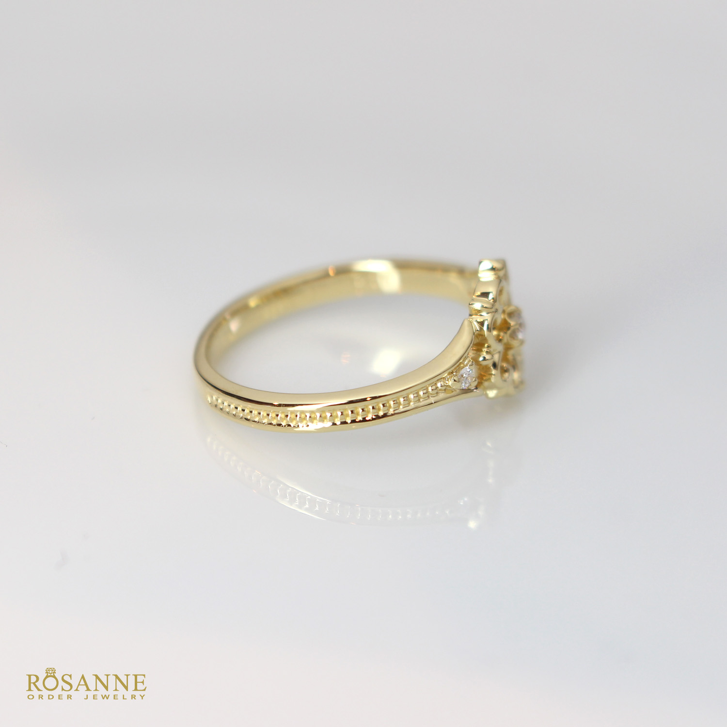 リングの腕には ミル打ちを施し、クラシックで上品な印象 をプラスしています。
