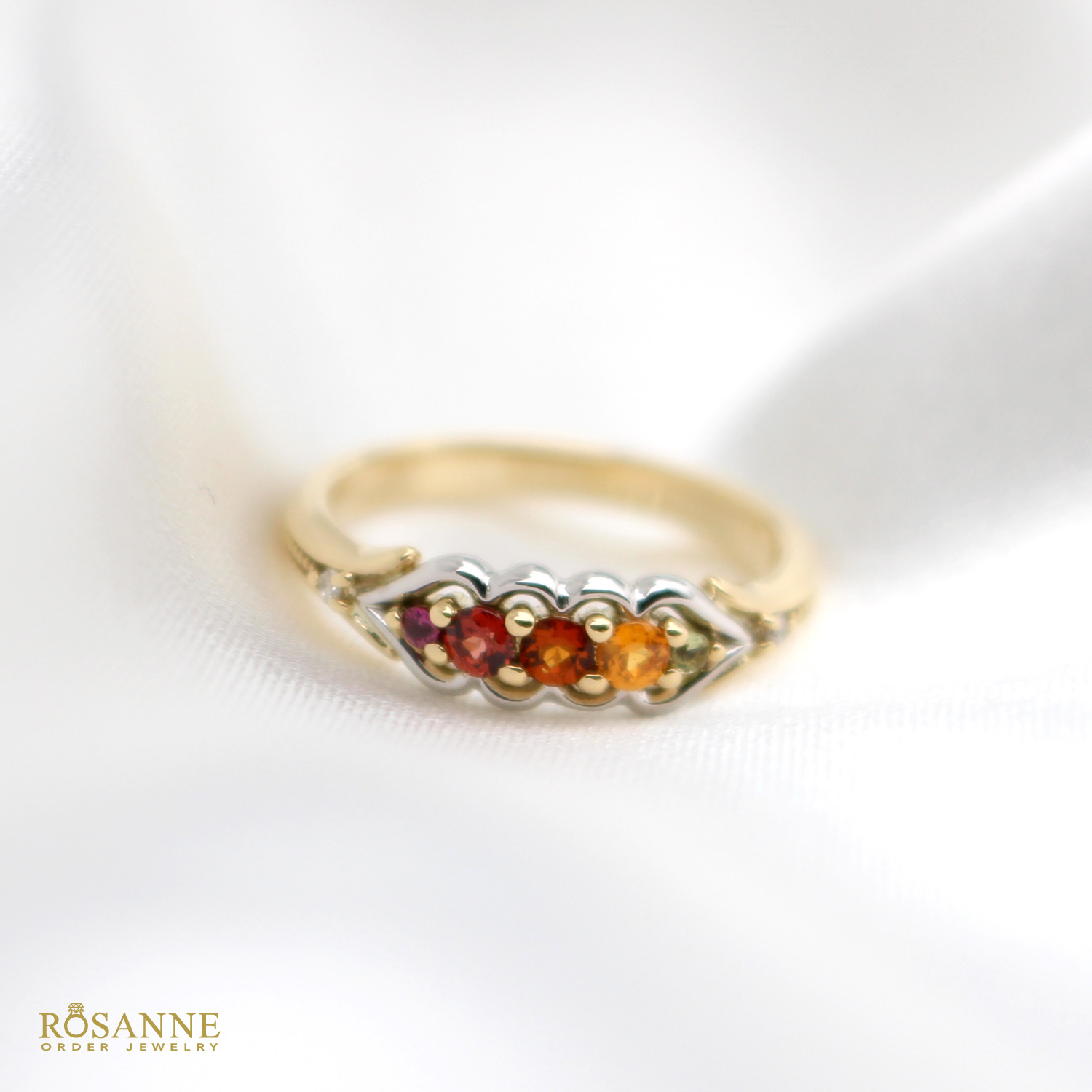 一年を彩る12種類の誕生石から、5つを自由にセレクト可能で、地金は K18ピンク・K18イエロー・プラチナ からお好みで組み合わせられます。