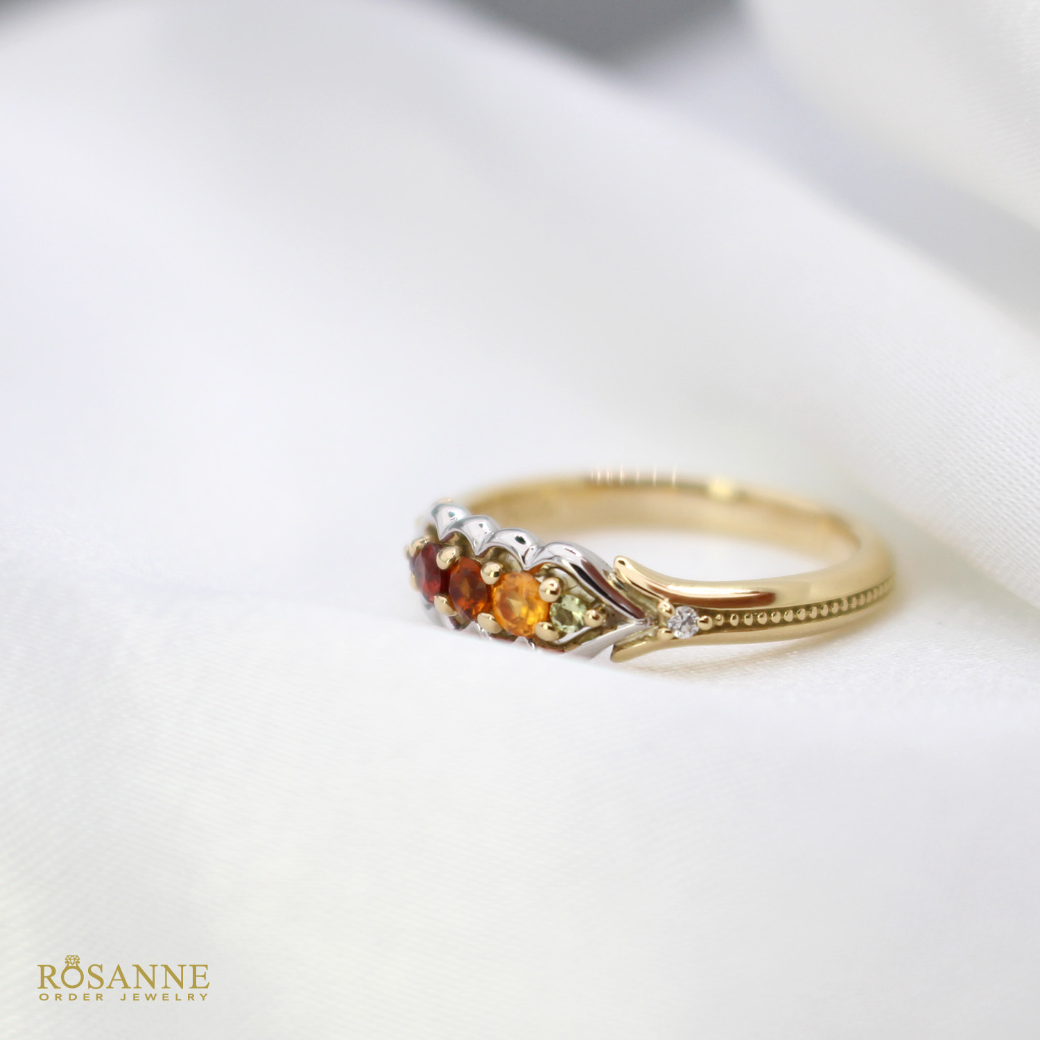 手仕事ならではの柔らかなラインと宝石の華やかさを楽しめる、オーダー店ならではの自由なアレンジが可能なファッションリングです。