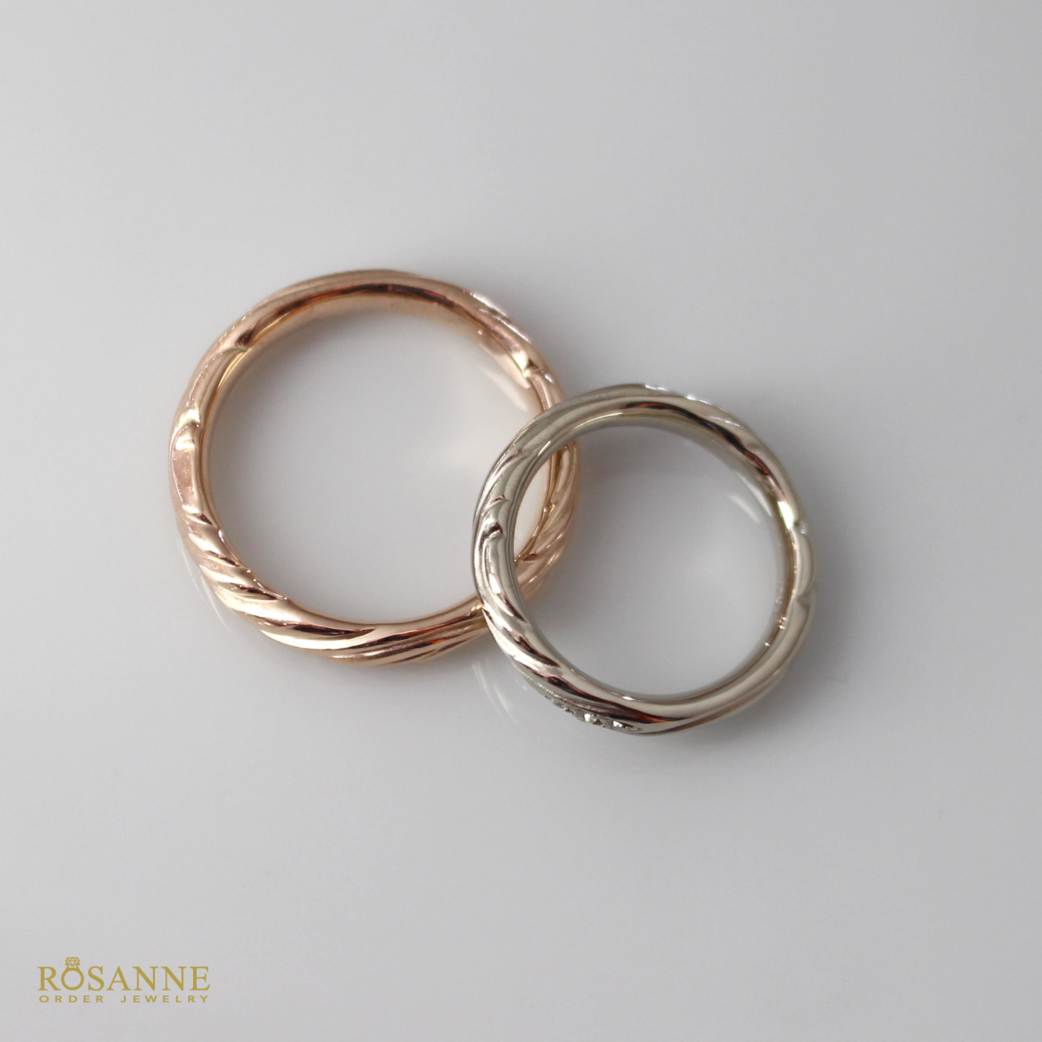 同じデザインをベースに、お二人だけの表情へと仕上げる結婚指輪です。