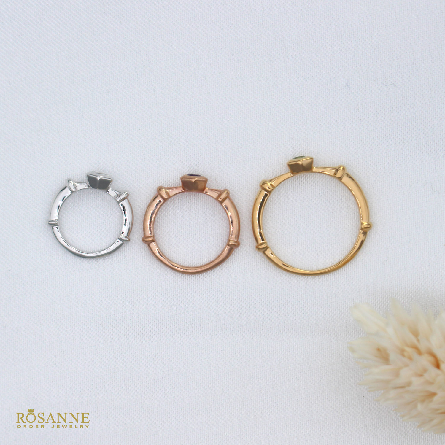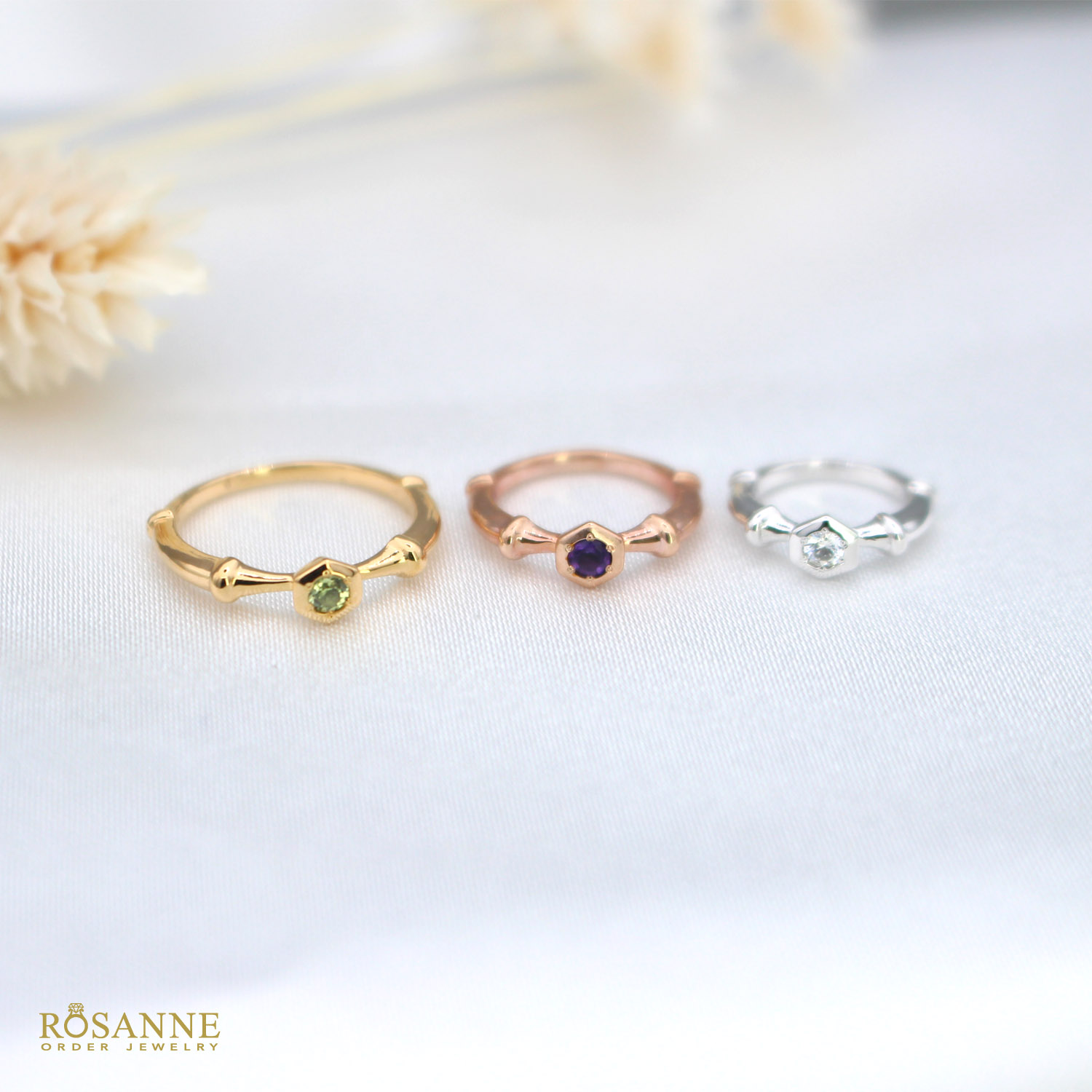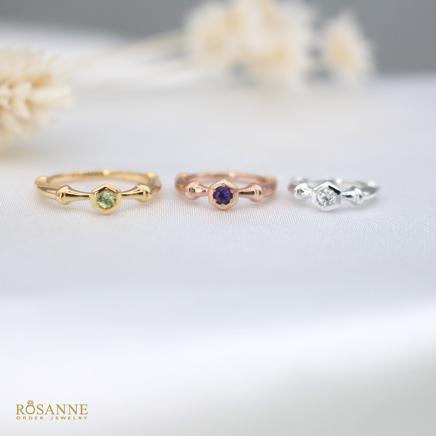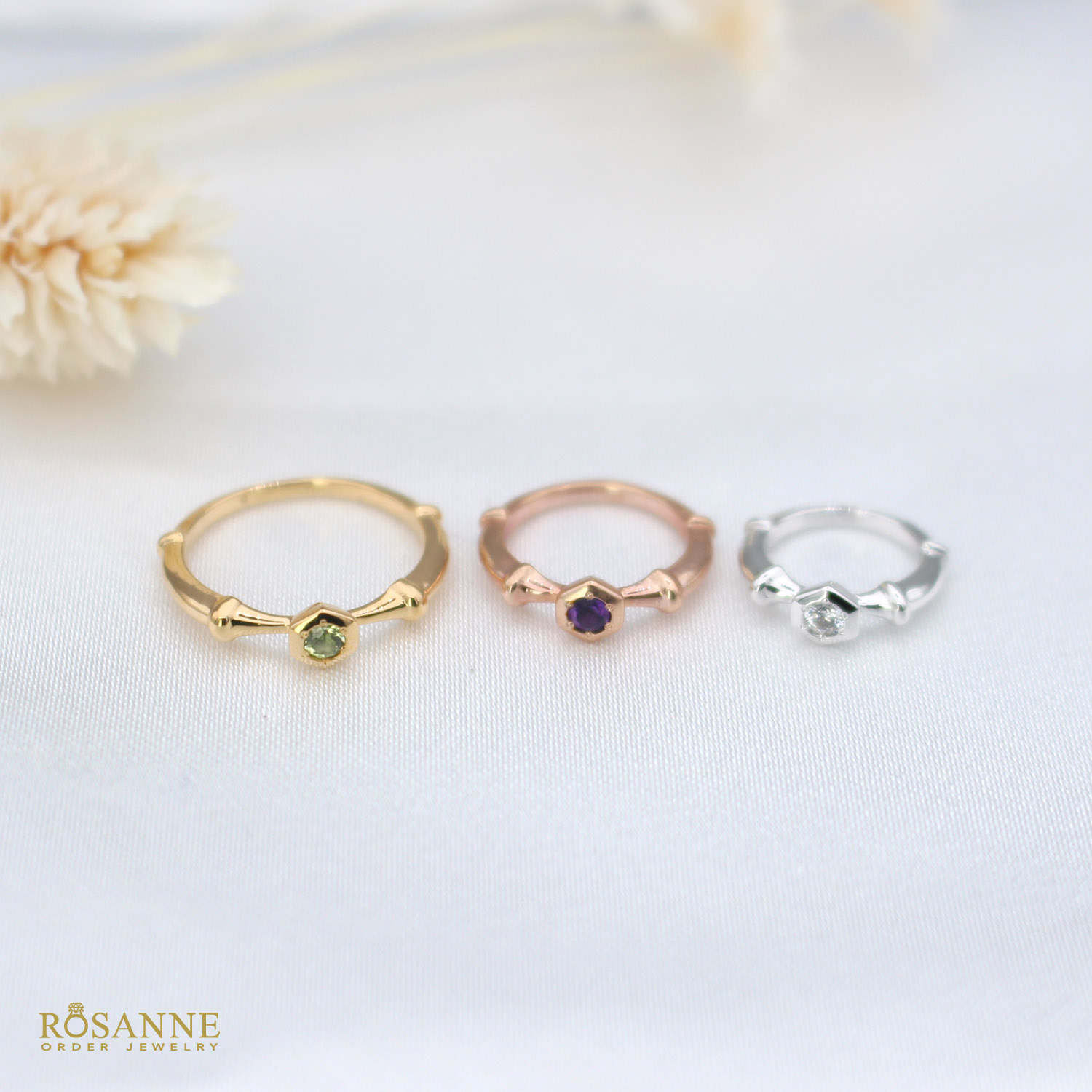 六角形の石座に小ぶりの2mm誕生石をセットした、