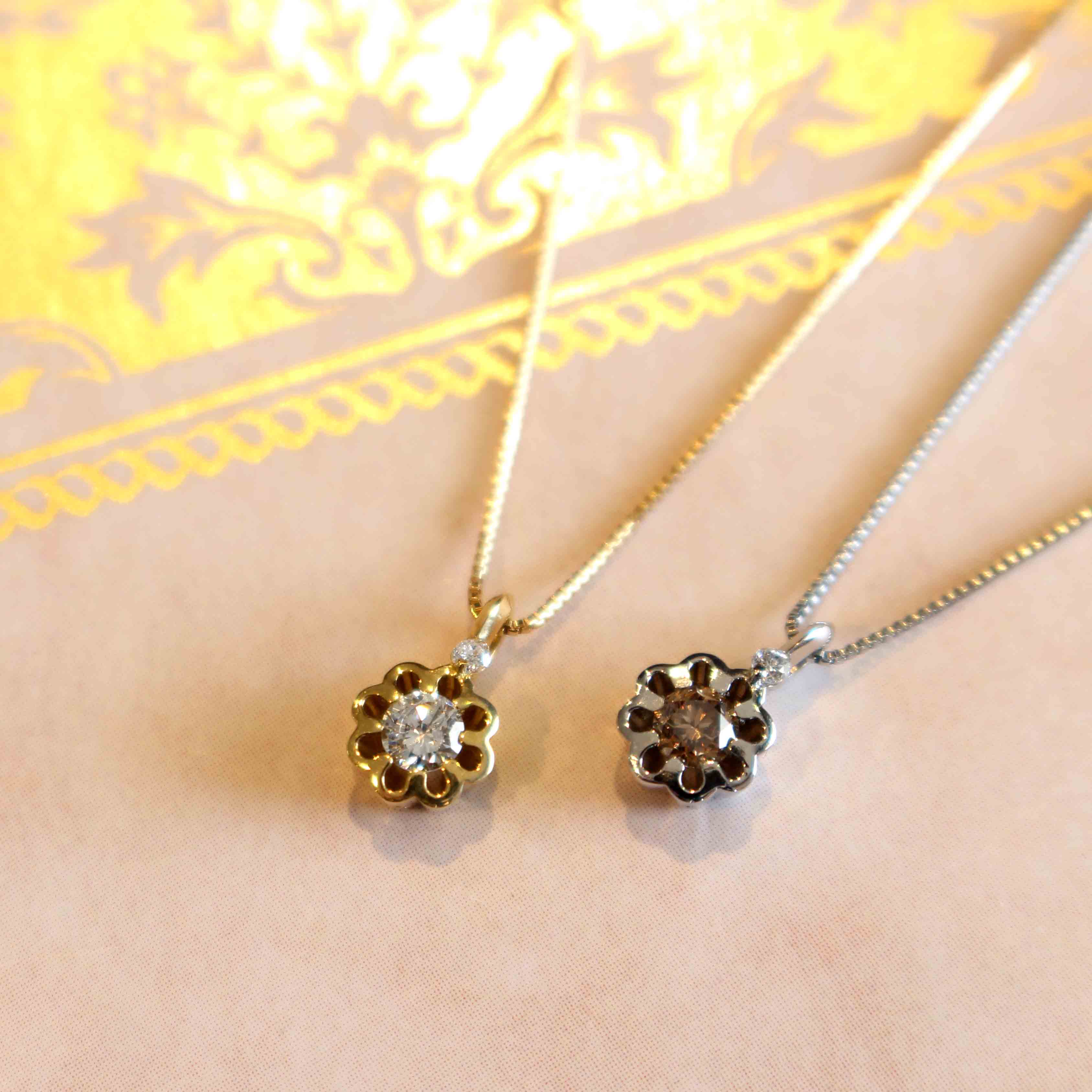 オリジナルネックレスをはじめカタログからお選び頂けるセミオーダーネックレスなどさまざまなデザインをご用意しております。オリジナルデザインでは誕生石をセッティングしたり、素材を変えたりあなたの好みに合わせてカスタムオーダーも承っております。